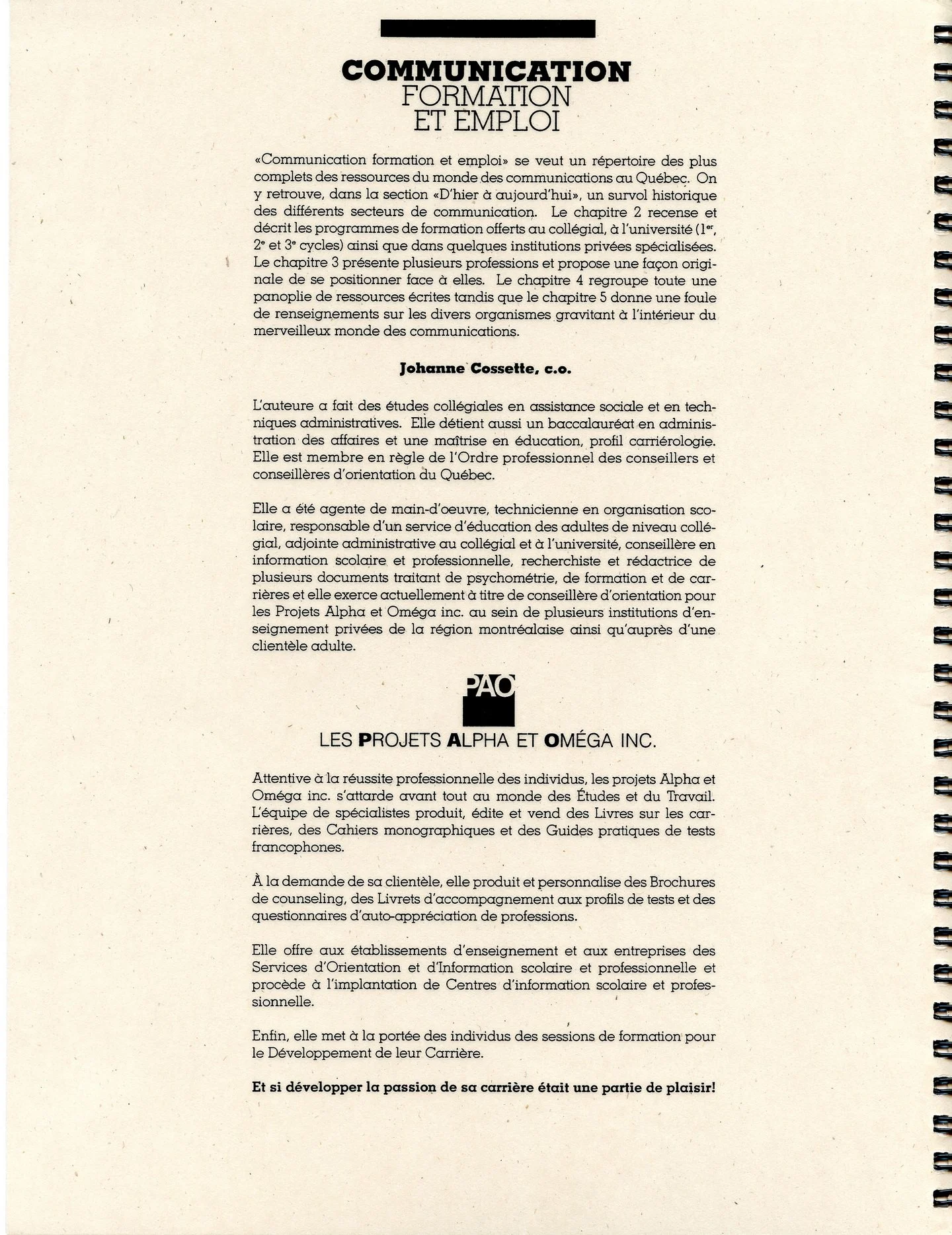 PAO s’interroge sur la psychométrie depuis 1995. L’entreprise a édité un livre présentant 14 tests d’intérêts et deux instruments d’orientation professionnelle.